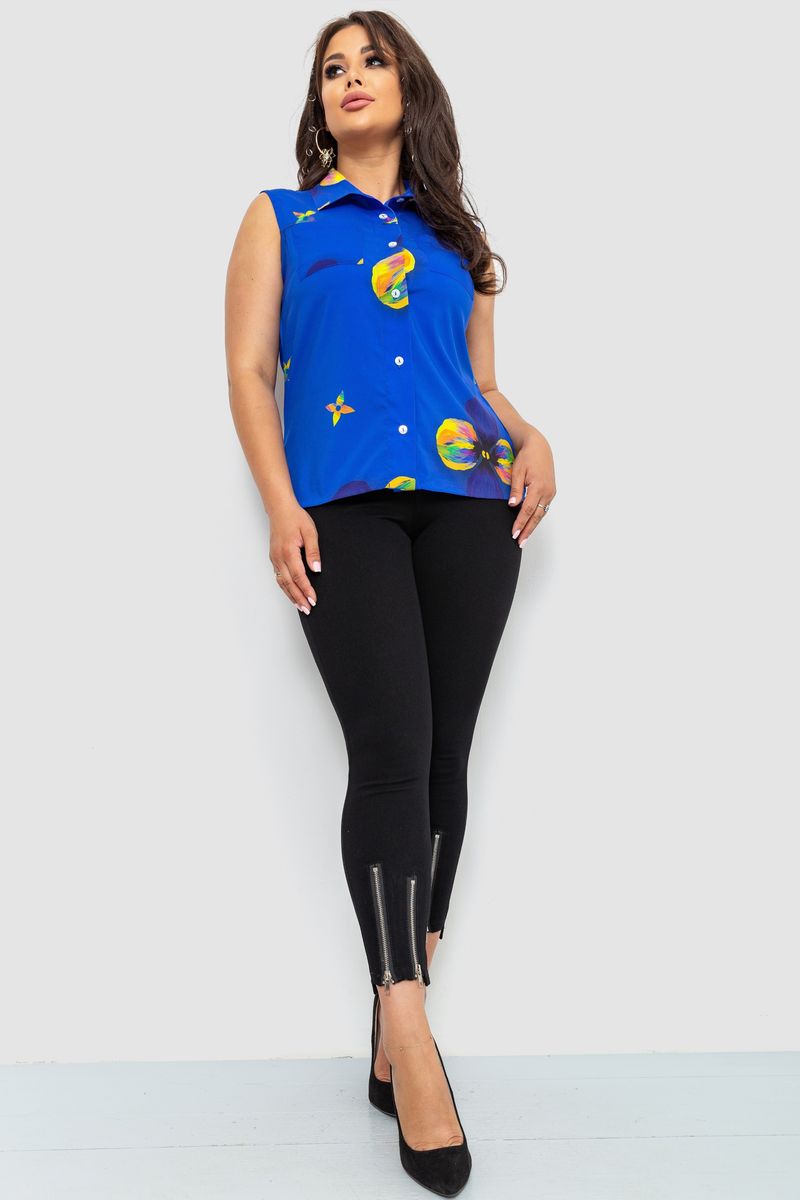 Блуза без рукавів з принтом, колір синій, 102R068-6