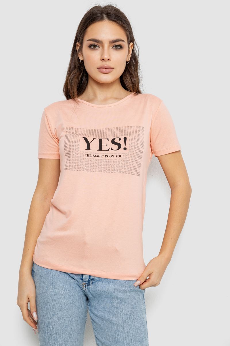 Футболка жіноча з принтом, колір персиковий, 244R507