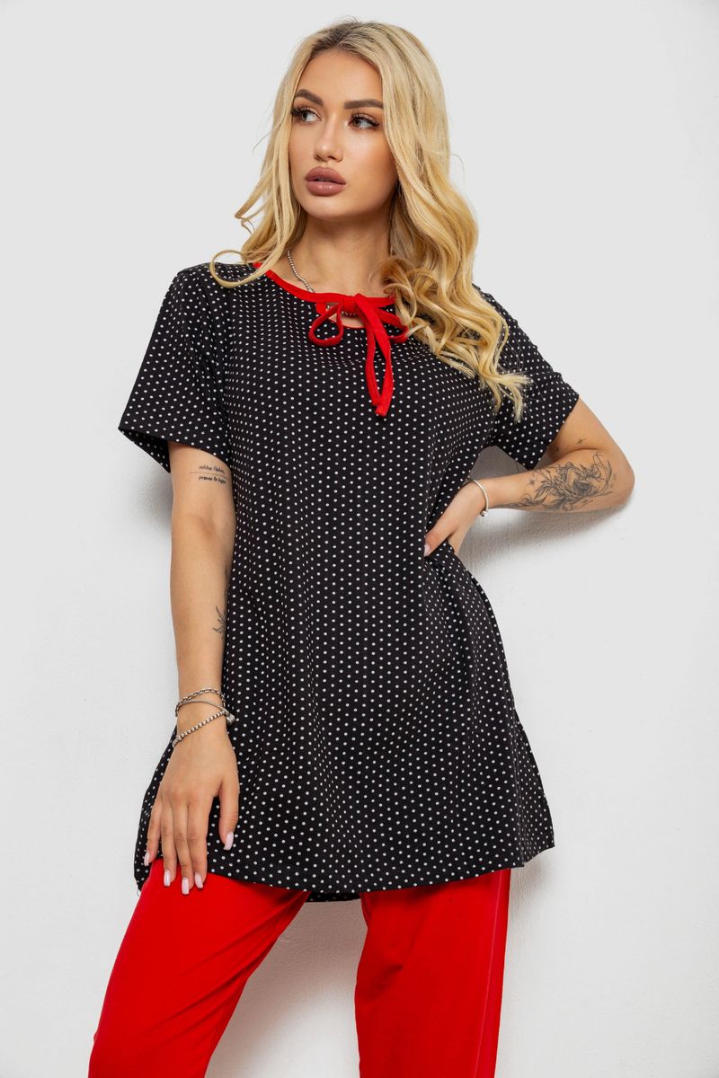 Піжама жіноча з принтом, колір чорний, 243R10389
