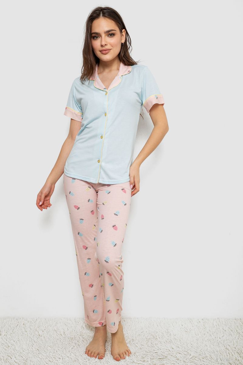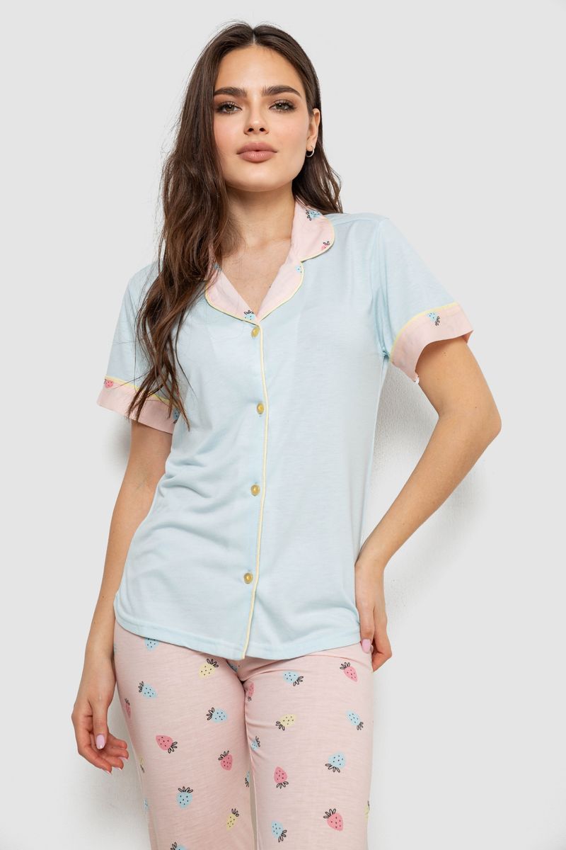 Жіноча піжама з принтом, колір блакитний, 243R7125